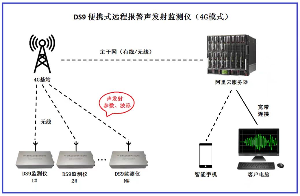 1. The DS9 acoustic emission monitoring system is a system based on the national communication backbone network for on-site acoustic emission monitoring.